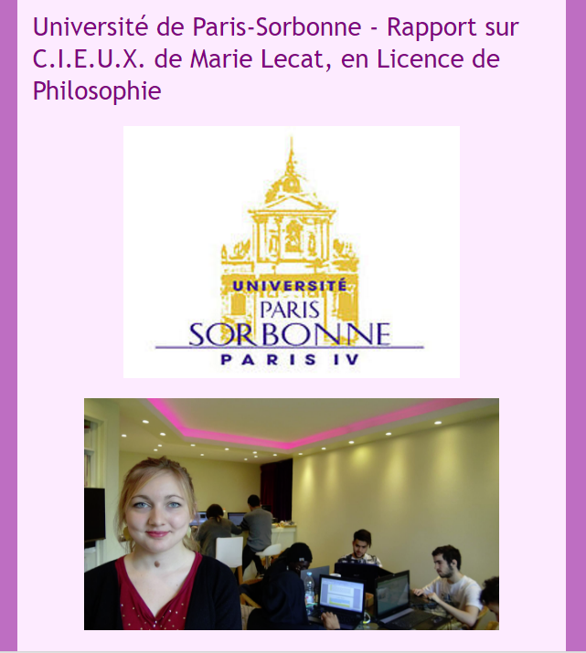 Université de Paris-Sorbonne – Rapport sur C.I.E.U.X. de Marie Lecat, en Licence de Philosophie