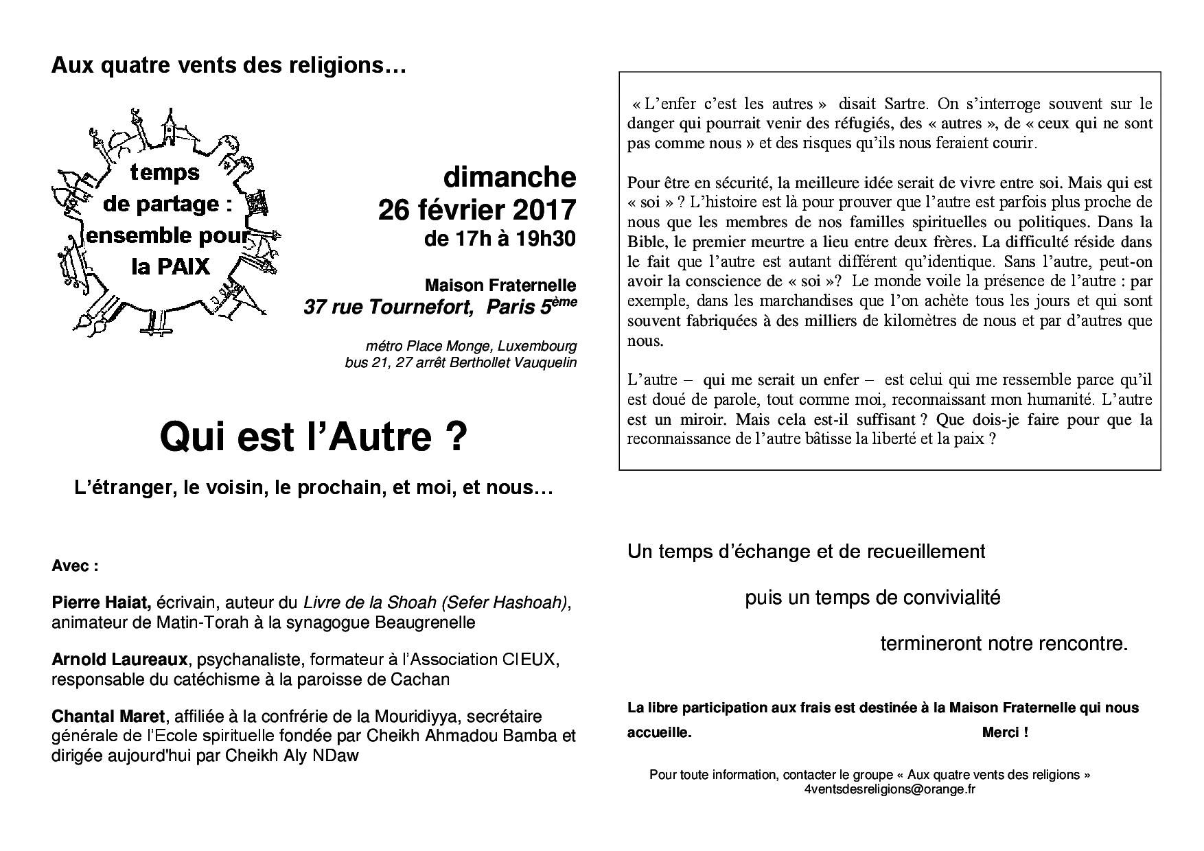 26 février 2017 – Rencontre des 4 vents des Religions avec Arnold Laureaux, formateur C.I.E.U.X. admin 26 février 2017 ÉpingleTweetezPartagezPartagez0 Partages